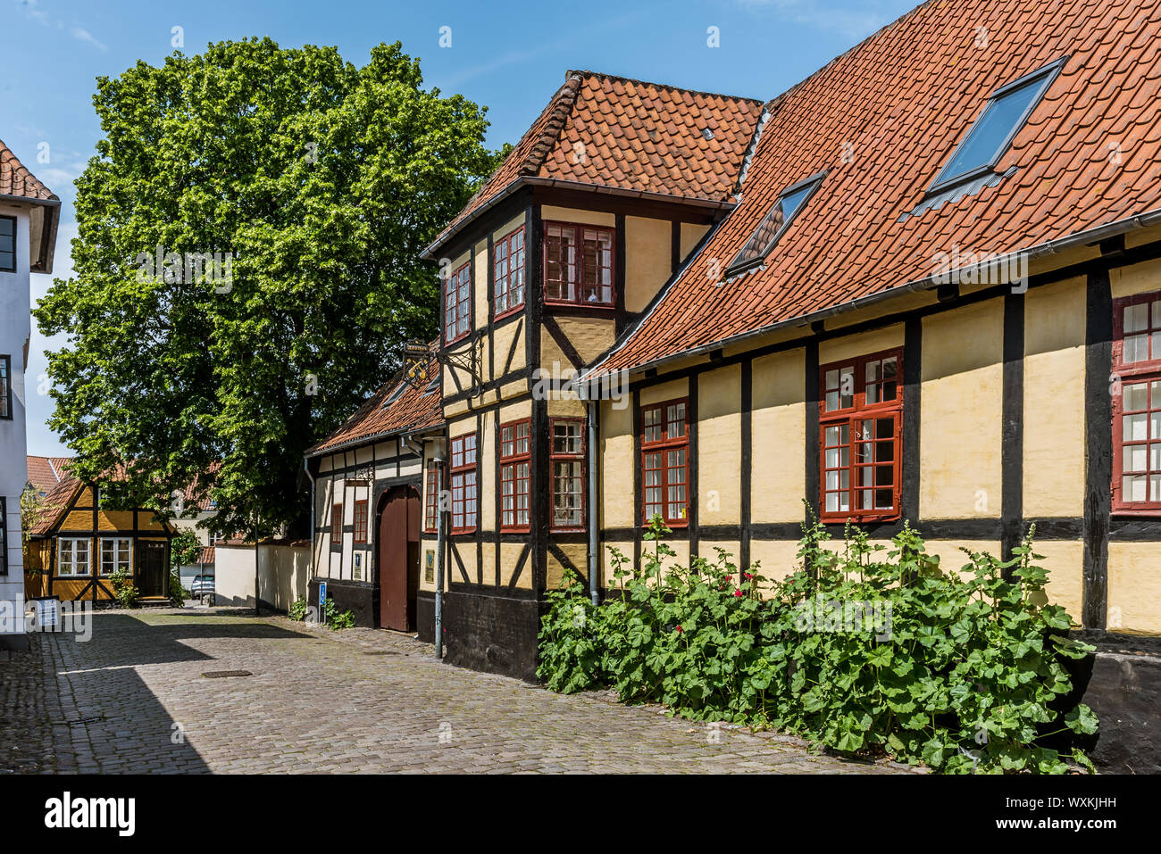 A Yellow Idyllic Half Timbered House With Green Hollyhocks Along The Wall Faaborg Denmark July 12 2019 Stock Photo Alamy